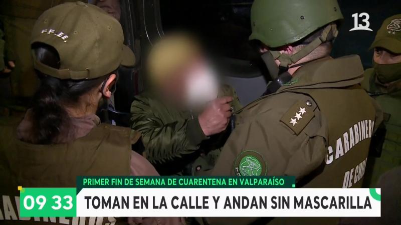 Un equipo de Bienvenidos acompañó a carabineros en esta primera fiscalización tras la medida, donde muchas personas fueron sorprendidas circulando sin mascarillas y tomando en la calle.