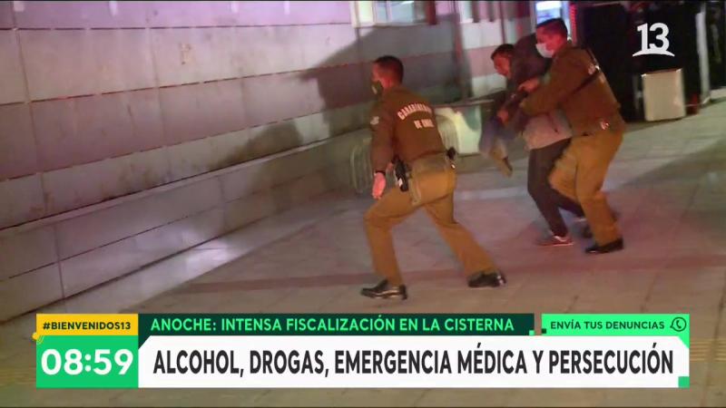 Drogas, alcohol, emergencia médica y persecución durante fiscalización en La Cisterna