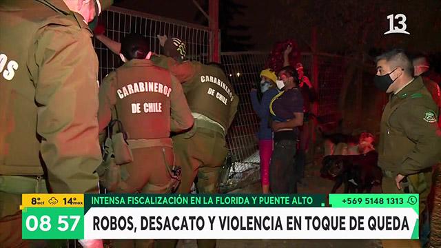 Robos y desacato durante toque de queda en La Florida y Puente Alto