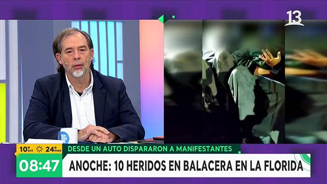 Anoche a eso de las 21:30 horas manifestantes habían instalado una barricada en Vicuña Mackenna con Trinidad, estaban protestando cuando desde un vehículo particular que iba pasando les dispararon en varias ocasiones, diez personas resultaron lesionadas fueron derivadas al Hospital de La Florida, ninguno está riesgo vital y se presume que los responsables podrían ser Carabineros de franco.