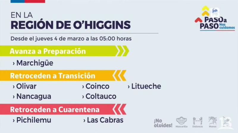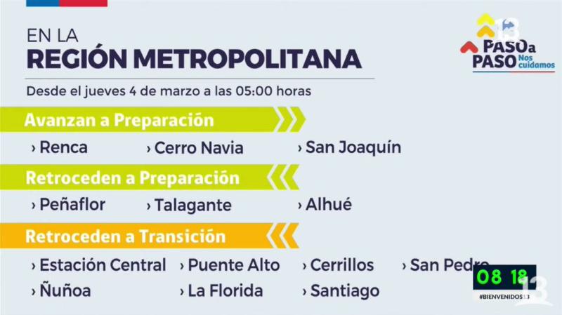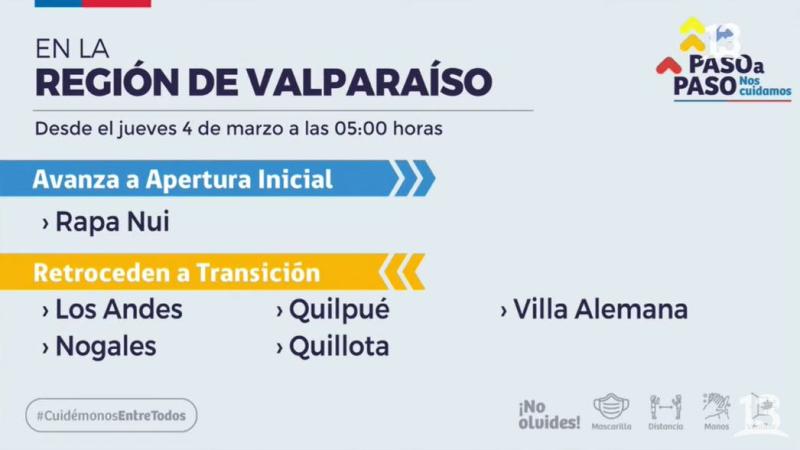 Las comunas que no fueron mencionadas, mantienen su fase hasta nuevo aviso.