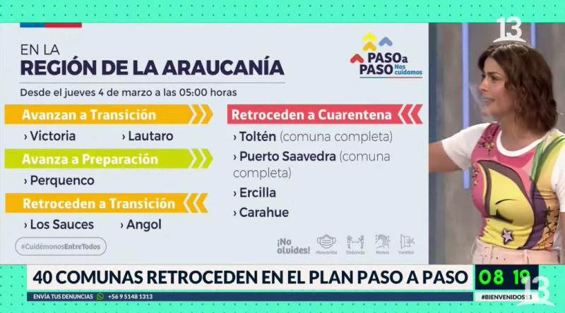 Tonka y Sergio nos mostraron los cambios que tendremos a partir de este jueves a las 05:00 horas. De acuerdo al balance del Ministerio de Salud son 40 comunas las que retroceden, 14 a cuarentena y 20 avanzan, de ellas, 6 a apertura inicial.