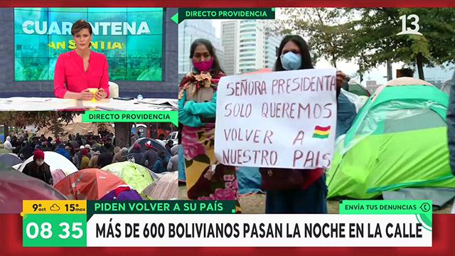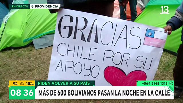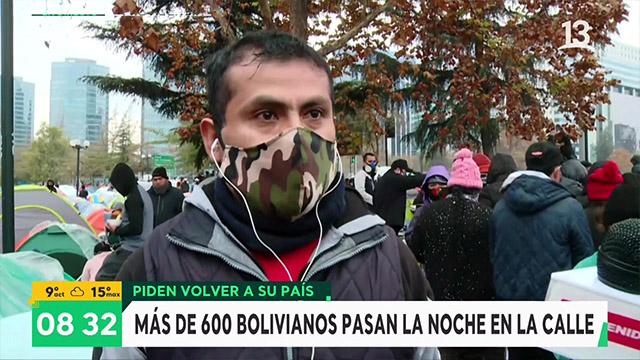 Hace 8 días que cerca de 600 bolivianos, entre ellos, mujeres embarazadas, niños y personas de la tercera edad, están acampando a las afueras del consulado de su país, ubicado en la comuna de Providencia, con el fin de que las autoridades de Bolivia los ayude repatriarlos.