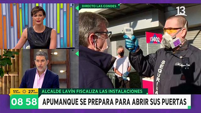 El alcalde Joaquín Lavín anunció la reapertura del centro comercial Apumanque que comenzará a funcionar hoy, pero sin público, pues se pondrá aprueba un plan piloto que limita la cantidad de accesos en los que, además, habrá un control sanitario en donde se tomará la temperatura y se aplicará alcohol gel.