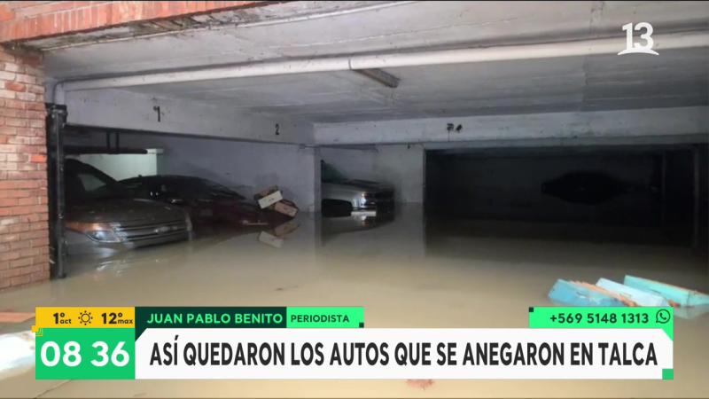 Ayer el periodista Juan Pablo Benito desde la comuna de Talca nos mostró una impresionante inundación, se trataba del estacionamiento de edificio San Isidro que quedó totalmente inundado con 14 vehículos en su interior.