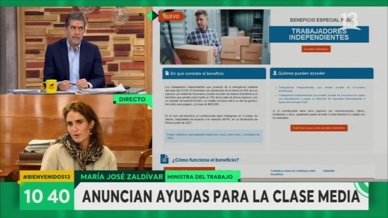 La ministra de Trabajo nos contó “este es un beneficio que lo que apunta es a todos los trabajadores que emiten boletas de honorarios y que han visto afectados sus ingresos. La idea es llegar con un beneficio que tiene dos partes.”