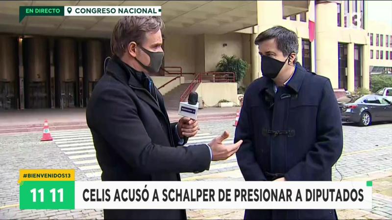 Celis comentó que “cuando mis principios, mis valores llegan a un limite que sobrepasan y mi compañero, mi vecino, Diego Schalper, que está justo en la oficina del al lado, el cual, en varias oportunidades, no es ahora, tiene una forma muy particular de hablar, habla demasiado fuerte, incluso coloca el teléfono en voz alta, coloca una especia de parlante”.