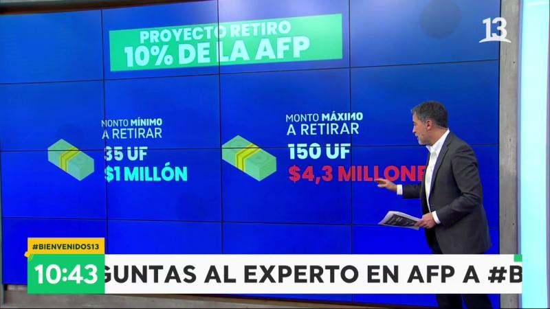 Que las personas puedan retirar el 10% de sus ahorros de los fondos de pensiones con un monto mínimo de 35 UF que hoy equivalen aproximadamente a $1 millón y con un tope máximos de 150 UF que equivalen a $4,3 millones.