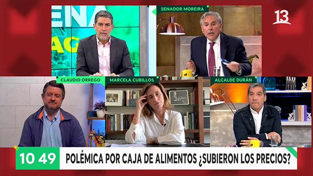 Luego Polo les preguntó a los representantes del oficialismo, el senador Moreira y la exministra Cubillos, por los dichos de la expresidenta Michelle Bachelet sobre que la distribución de cajas son escasas comparativamente para la situación ¡Mira lo que comentaron al respecto!