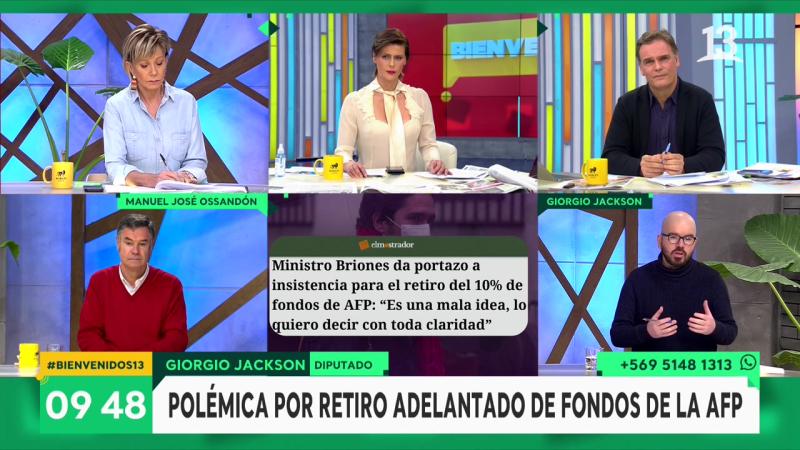 Esta mañana nos acompañaron el senador Manuel José Ossandón y el diputado Giorgio Jackson a quienes les preguntamos sobre el tema que ha estado en boga durante la semana ¿Es posible que las personas que más lo necesiten saquen un porcentaje de sus ahorros de la AFP?