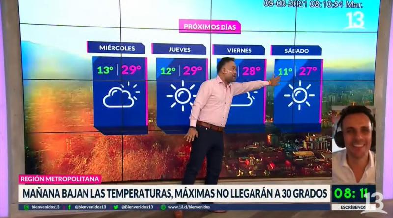 Gianfranco Marcone desde temprano como siempre con su completo informe del tiempo que nos sorprendió con una noticia, ya que, después de días intensos de calor que el día lunes llegaron hasta los 34 grados, será el día de mañana miércoles cuando estas comiencen a bajar bajo los 30 grados.