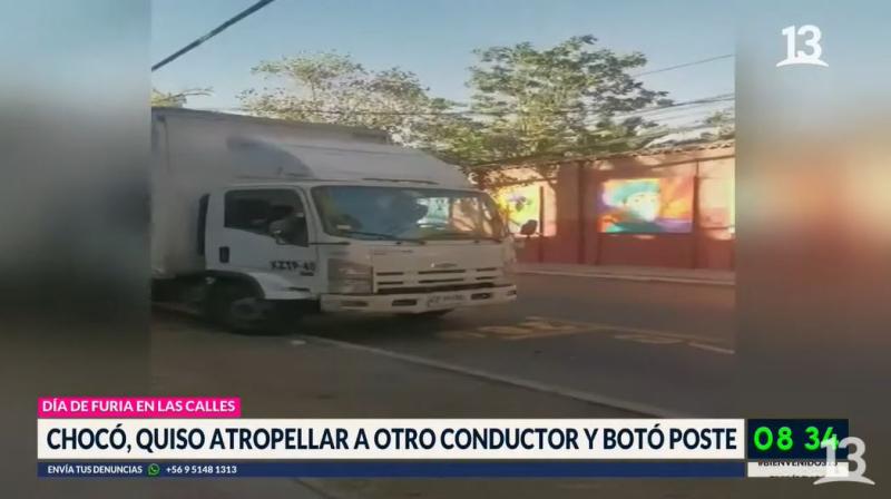 Este miércoles en pleno informe del tiempo, nos tomamos una pausa en Bienvenidos, para ver un video con insólito hecho que ocurrió en la tarde de este lunes, cuando el conductor de un camión atropelló un furgón utilitario y un poste en Providencia, luego de una discusión entre los ocupantes de ambos vehículos.