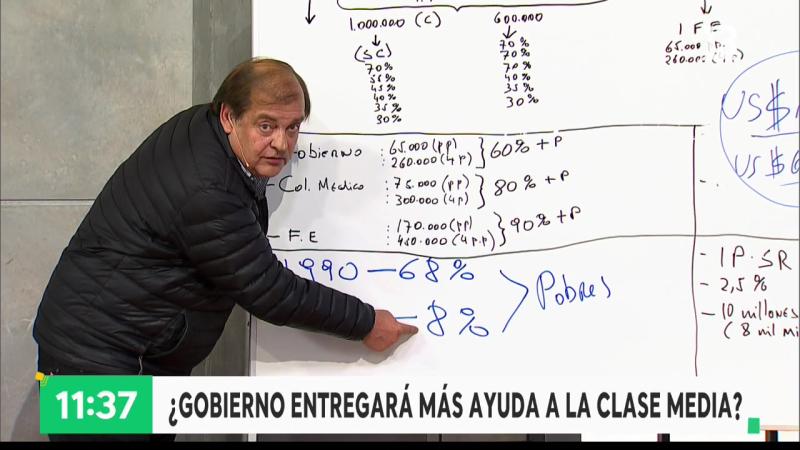 Luego explicó desde la pizarra que “un solo dato del cual me siento orgulloso, el 11 de marzo de 1990, y no voy a decir nada de quien dejó el poder, los chilenos bajo la línea de la pobreza eran el 68%, la democracia, 24 años de gobierno de la Concertación y la Nueva Mayoría y 6 de la derecha, la ha bajado a un 8%, eso se hizo en 30 años.”