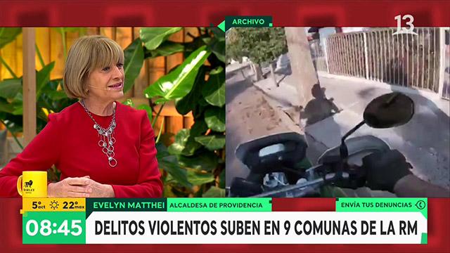 Esta mañana nos acompañó la alcaldesa de Providencia, Evelyn Mathhei a quien le preguntamos sobre la situación de violencia en su comuna, respecto a esto la alcaldesa comentó:
