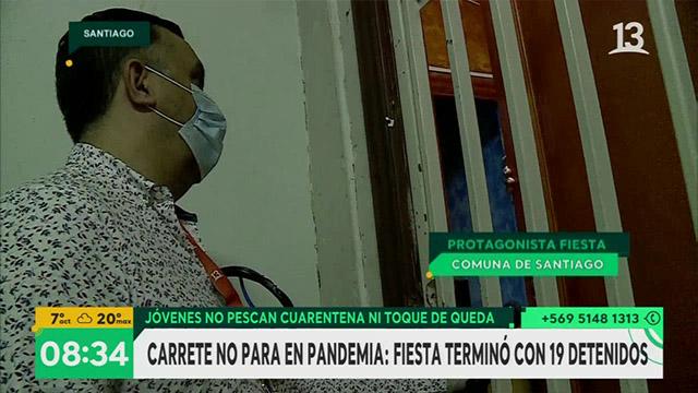 La fiesta terminó con 19 detenidos por realizar la celebración de un cumpleaños que no terminó de la mejor forma, según nos contó el Mayor Cesar Lillo, jefe de operaciones de la primera comisaría de Santiago, mientras los funcionarios hacían un patrullaje detectaron desde la vía publica ruidos molestos que también fueron alertados por los vecinos del sector, procedieron fiscalizar y controlar y se dieron cuenta de que era una fiesta clandestina.