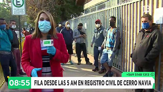 Nuestra periodista Marilyn Pérez fue hasta la comuna de Cerro Navia en donde desde las 5 de la mañana hay personas haciendo una larga fila fuera del registro civil de dicha comuna para poder sacar su clave única previo a que comience a regir la cuarentena total.