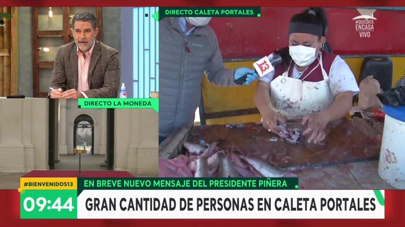 El periodista Enzo Poblete nos mostró en vivo cómo los porteños llegaron en masa a abastecerse de pescados y mariscos en Caleta Portales.
