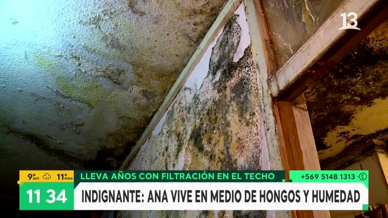 Ana tiene 80 años, vive en un departamento en la comuna de Pudahuel que lamentablemente está en malas condiciones, hace dos años que se le llueve y vive rodeada de moho y humedad.