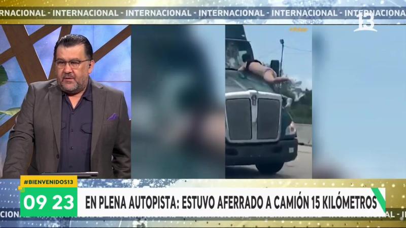 Hombre estuvo aferrado al parabrisas de un camión en plena autopista durante 15 kilómetros.