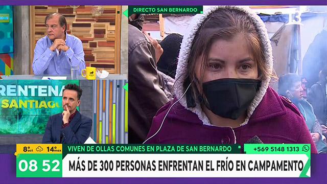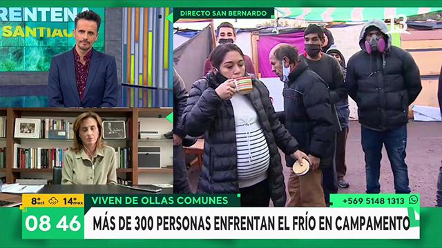 300 personas pertenecen al campamento dignidad de la comuna de San Bernardo que lo están pasando mal con la cuarentena y peor con la lluvia de ayer. Hoy estaban pasando el frío alrededor de un fogón y un desayuno común.
