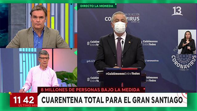 En rueda de prensa le preguntaron la Ministro de Salud, Jaime Mañalich, por qué se rebajo la licencia médica por sospecha de coronavirus de 14 a 4 días cuando las clínicas han reportado que son 4 días los que se demora en detectar el virus.
