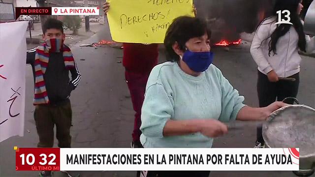 Pobladores de la población salvador Dalí de la comuna de La Pintana salieron a manifestarse con carteles, cacerolazos y haciendo barricadas por la falta de ayuda y comida. Nuestro reportero que eran alrededor de 40 personas y en su mayoría dueñas de casa.