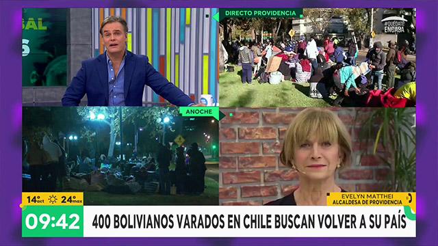 Esta mañana nos comunicamos con la alcaldesa Evelyn Mathhei debido a que 400 ciudadanos bolivianos pasaron la noche en las afueras del consulado de Bolivia, ubicado en la comuna de Providencia, con el fin de poder volver a su país.