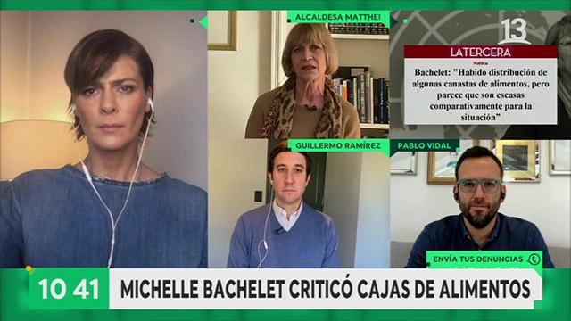Esta mañana le preguntamos a la alcaldesa Evelyn Matthei sobre los dichos de la expresidenta, Michelle Bachelet quien criticó la entrega de cajas de alimento por parte de Estado alegando que parece una medida escasa comparativamente con la situación.