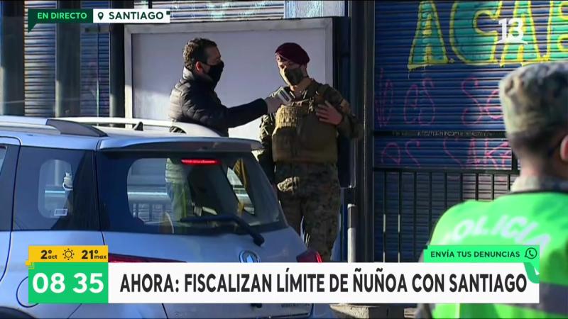 Funcionarios del Ejército están fiscalizando a los automovilistas, esto debido a que la comuna de Ñuñoa ayer dejó la cuarentena, pero Santiago mantiene esta medida sanitaria.