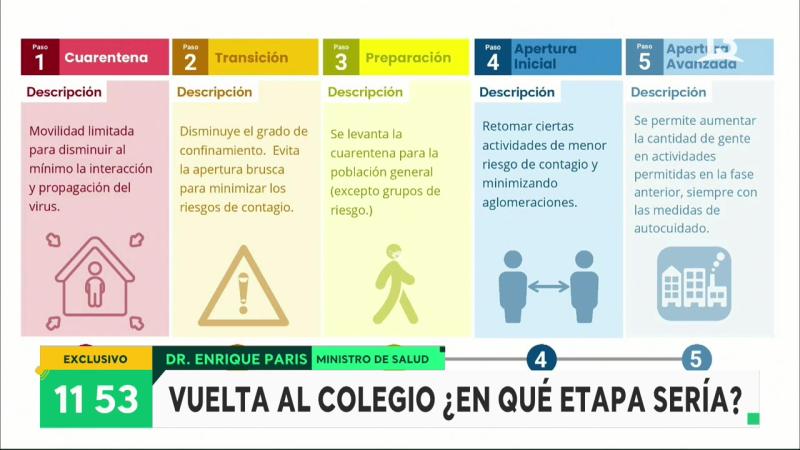Durante esta jornada nos contactamos con el Ministro de Salud, Enrique Paris, quien nos explicó el programa “Paso a Paso” recientemente anunciado para llegar al desconfinamiento.