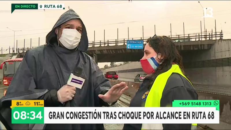 Nuestro reportero Leo Castillo fue hasta la comuna de Pudahuel en donde se provocó un accidente por alcance debido a la lluvia dejando una gran congestión.