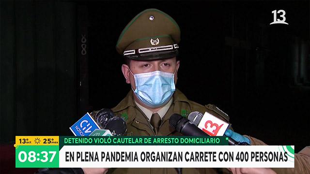 Una patrulla de Carabineros pasó por el lugar tras recibir llamados por ruidos molestos, hablaron con el guardia del lugar quien les dijo que era un evento privado, peor al seguir indagando, verificaron que se trataba de un evento comercial por lo que confiscaron equipos y detuvieron a la persona que arrendó el galpón, quien, además, había violado la restricción de arresto domiciliario.