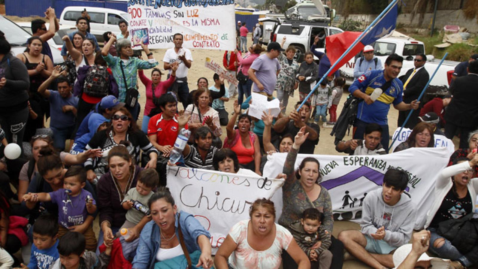 Un grupo de personas del campamento Felipe Camiroaga, ubicado en Viña del Mar, exigió una respuesta por parte de las autoridades de la Ciudad Jardín ante sus demandas. Resulta que estos pobladores representan a más de 900 familias que actualmente no tienen acceso a los suministros de luz y agua, razón por la que decidieron protestar afuera del hotel.