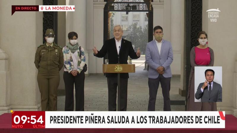 Acompañado de tres trabajadores: Maritza, Carolina y Juan, el Presidente Sebastián Piñera entregó un sentido saludo en este 1 de mayo.