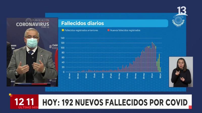 Asimismo, se adicionaron 192 nuevos fallecimientos, sumando un total de 2.475 decesos. Esto tras la nueva metodología que usa la base de datos del Registro Civil y cuyas cifras corresponden a lo informado en los últimos días por la entidad. Tal como lo explicó el Secretario de Estado mediante un gráfico.