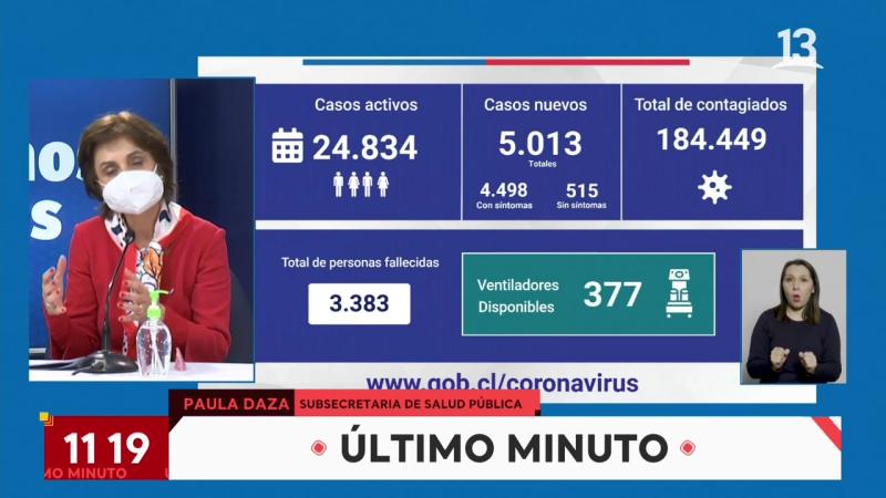 De acuerdo a lo informado esta mañana por la Subsecretaria de Salud Pública, Paula Daza, este martes 16 de junio se registraron 5.013 nuevos casos de Covid-19 en nuestro país, sumando un total de 184.449 contagiados.