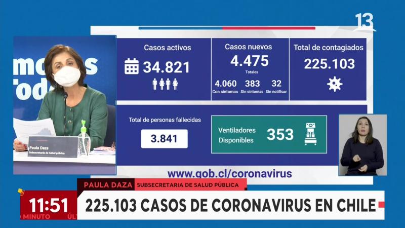 De acuerdo a lo informado esta mañana por la Subsecretaria de Salud Pública, Paula Daza, este jueves 18 de junio se registraron 4.475 nuevos casos de Covid-19 en nuestro país, sumando un total de 225.103 contagiados.