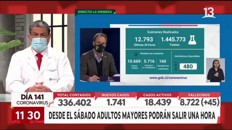 De acuerdo a lo informado esta mañana por el Subsecretario de Redes Asistenciales, Arturo Zúñiga, este miércoles 22 de julio se registraron 1.741 nuevos casos de Covid-19 en nuestro país, sumando un total de 336.402 contagios.