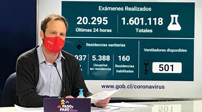 Además se informó que existe un total de 501 respiradores disponibles y 10.937 cupos totales en residencias sanitarias.