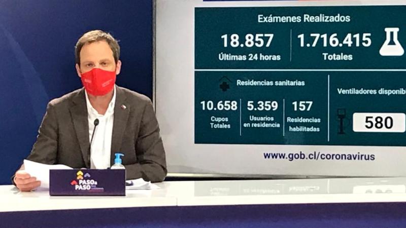Además se informó que existe un total de 580 respiradores disponibles y 10.658 cupos totales en residencias sanitarias.