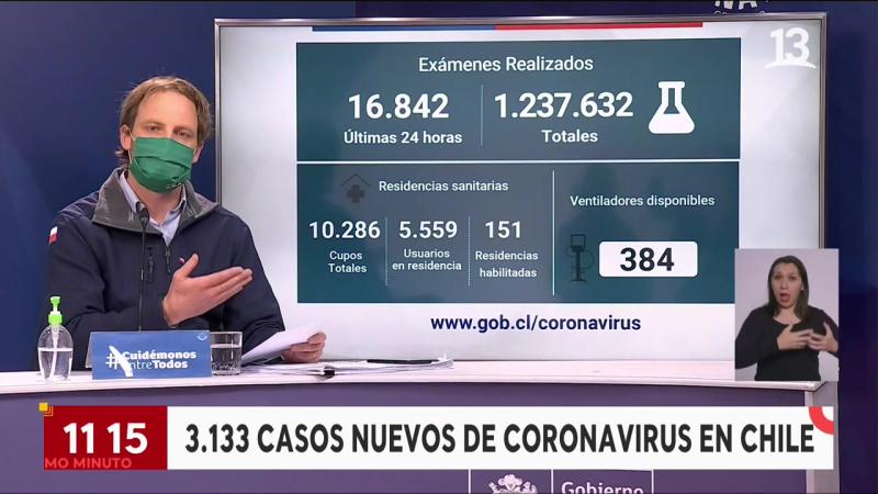De acuerdo a lo informado esta mañana por el Subsecretario de Redes Asistenciales, Arturo Zúñiga, este jueves 9 de julio se registraron 3.133 nuevos casos de Covid-19 en nuestro país, sumando un total de 306.216 contagiados.