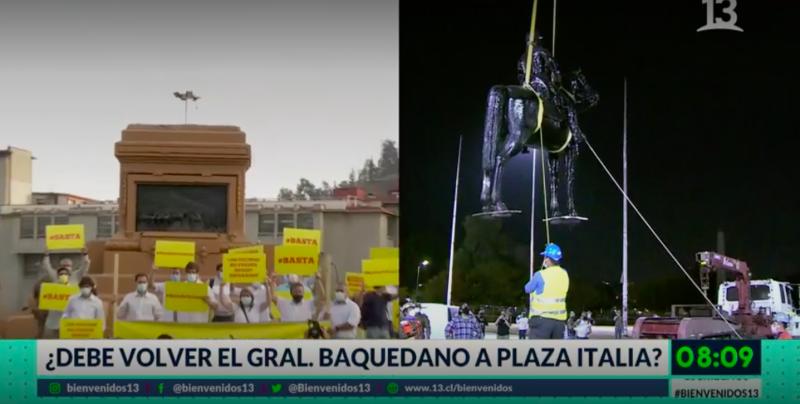Esta jornada en Bienvenidos te informamos desde Plaza Italia sobre el retiro de la estatua del General Baquedano que fue sacada para su restauración. Sobre esta decisión, tomada por el Consejo de Monumentos Nacionales, es que entrevistamos a ciudadanos y te compartimos información sobre la historia esta escultura.
