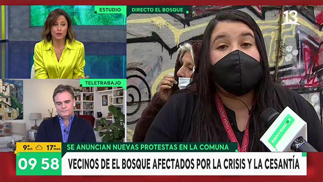 Tamara vive en el sector donde ayer se realizaron las protestas en El Bosque, ella trabaja de colera en la feria y vive de lo que poco que pude ganar a diario, además debe alimentar a un hijo de 2 años.