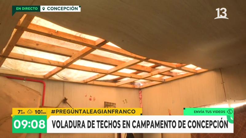 Voladura de techos en campamento de Concepción tras las intensas lluvias