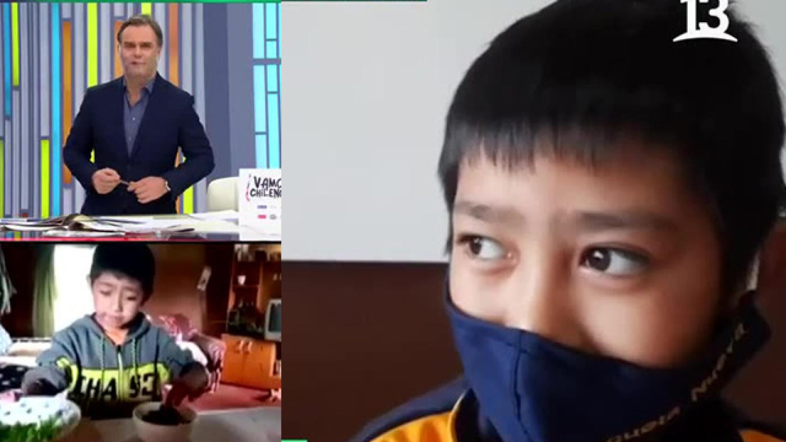 El pequeño Juan conversó con Bienvenidos y con un poco de vergüenza nos contó que se sacó un 7 en la tarea y que el pebre se lo comió son su familia acompañado de unas ricas sopaipillas.
