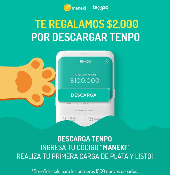 Ingresando el código MANEKI en Tenpo sé parte de las primeras 1.500 personas en recibir $2.000 de regalo!