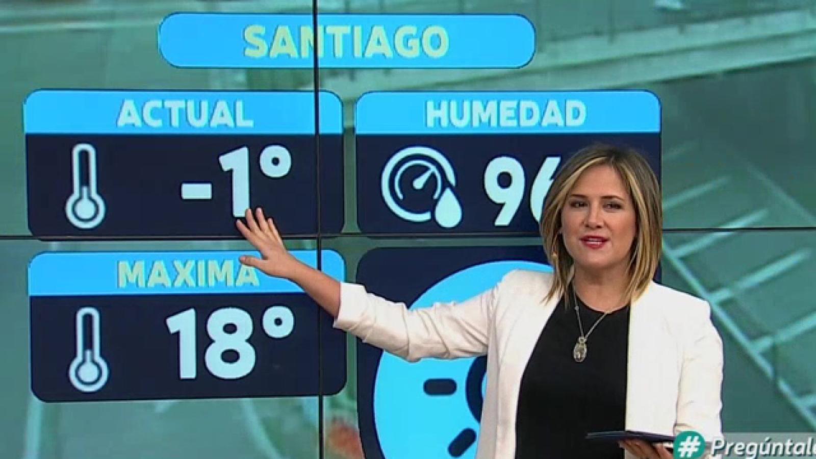 La mínima esta mañana en la capital fue de -2 grados y la máxima llegará a 18, pero no durará mucho tiempo porque las bajas temperaturas estarán presentes toda la semana sobre todo en los valles interiores, el viernes existe una posibilidad de que vuelvan las precipitaciones. En el norte se esperan vientos en la precordillera de Antofagasta, en el centro habrá heladas matinales. Pero suben las temperaturas en la tarde, en el sur heladas matinales sin lluvia y las condiciones del aire.