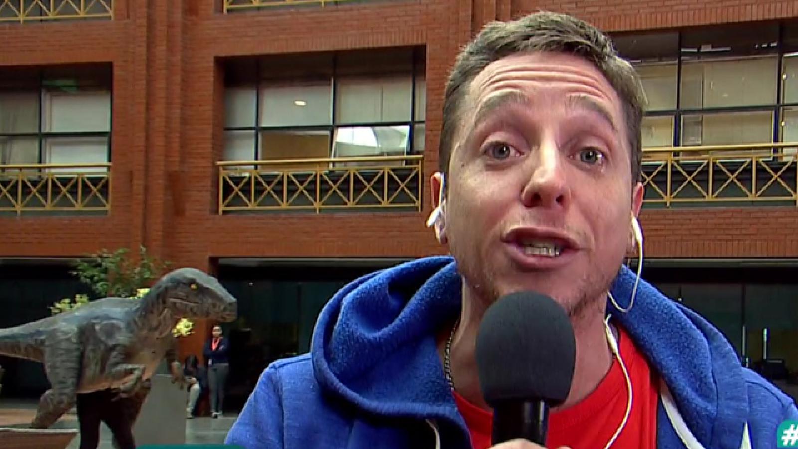 ¡Cuidado Mati! ¿Qué hacen estos dinosaurios en el Canal? Por: Estefani Petersen 17 de Julio de 2018 - 17:25 hrs. Compartir Nuestro Matías Vega fue atacado por dos dinosaurios ¿De qué se trata? ¡Míralo aquí!