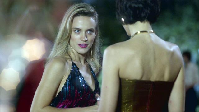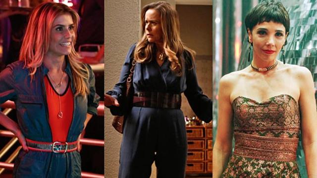 Los brillos: Telas brillantes, metalizadas y con lentejuelas es lo que usan las mujeres de esta teleserie