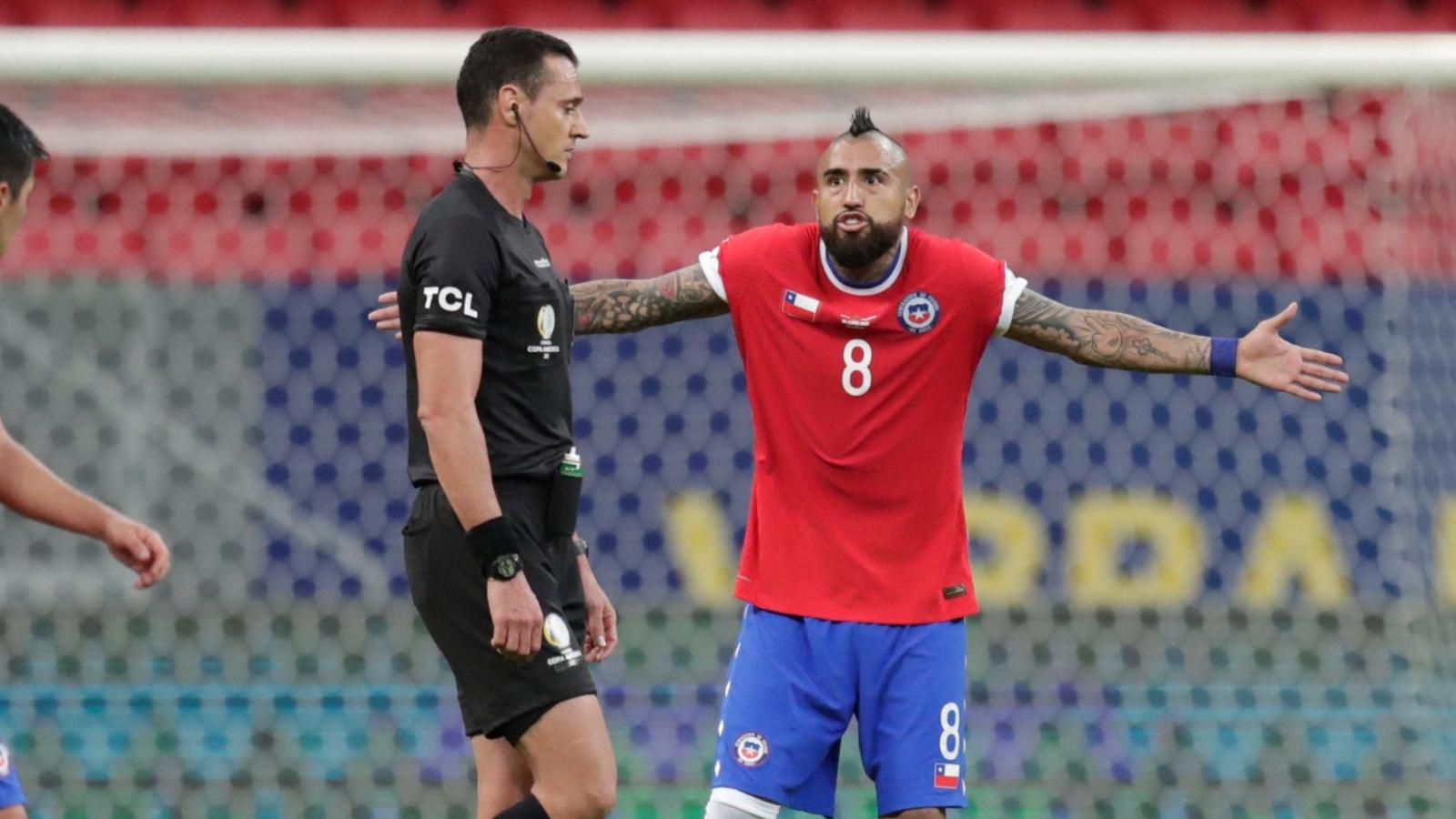 Tras un tiro de esquina, un jugador de Paraguay toca el balón con la mano, en la que todo Chile alegó penal inmediatamente. Arturo Vidal fue de los más insistentes, la repetición muestra el contacto con la mano del defensor paraguayo, pero Wilmer Roldán al igual que el VAR consideró que fue bajo un movimiento natural por lo tanto no sancionó la pena máxima.